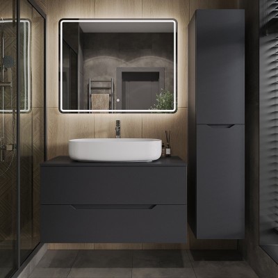 - Комплектация: Тумба под раковину со столешницей Orange Line 100, подвесная, 2 ящика, матовая черная; Накладная раковина Orange B07 B07-675W, белый глянец; Зеркало Orange Nature ON-100ZE, с LED подсветкой