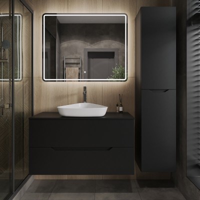 - Комплектация: Тумба под раковину со столешницей Orange Line 100, подвесная, 2 ящика, матовый графит; Накладная раковина Orange B07 B07-500W, белый глянец; Зеркало Orange Nature ON-100ZE, с LED подсветкой
