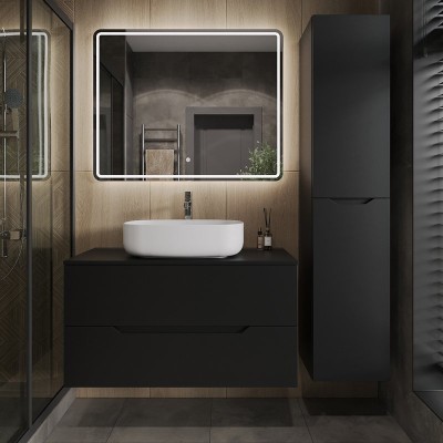 - Комплектация: Тумба под раковину со столешницей Orange Line 100, подвесная, 2 ящика, матовый графит; Накладная раковина Orange B07 B07-600W, белый глянец; Зеркало Orange Nature ON-100ZE, с LED подсветкой