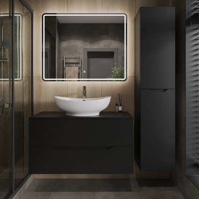 - Комплектация: Тумба под раковину со столешницей Orange Line 100, подвесная, 2 ящика, матовый графит; Накладная раковина Orange B08 B08-585w, белый глянец; Зеркало Orange Nature ON-100ZE, с LED подсветкой