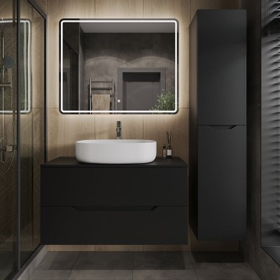 - Комплектация: Тумба под раковину со столешницей Orange Line 100, подвесная, 2 ящика, матовый графит; Накладная раковина Orange B08 B08-600W, 60 см белый глянец; Зеркало Orange Nature ON-100ZE, с LED подсветкой