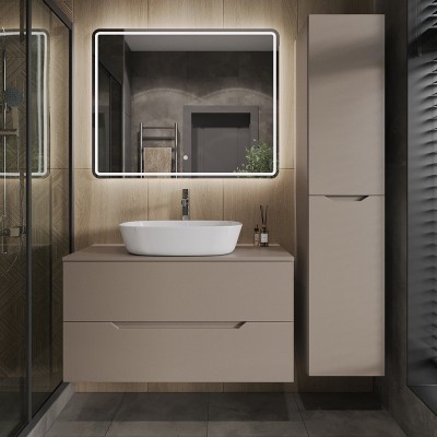 - Комплектация: Тумба под раковину со столешницей Orange Line 100, подвесная, 2 ящика, матовый латте; Накладная раковина Orange B07 B07-500W, белый глянец; Зеркало Orange Nature ON-100ZE, с LED подсветкой
