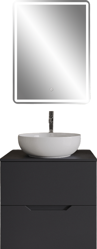 - Комплектация: Тумба под раковину со столешницей Orange Line 60, подвесная, 2 ящика, матовый графит; Накладная раковина Orange B07 B07-420W, белый глянец; Зеркало Orange Nature ON-60ZE, с LED подсветкой