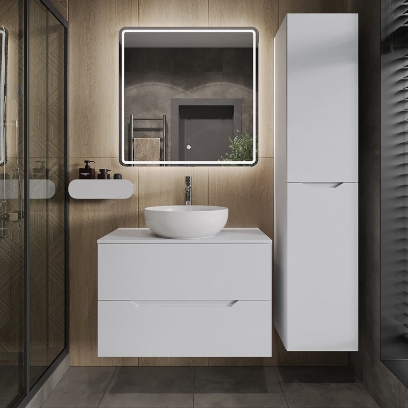 - Комплектация: Тумба под раковину со столешницей Orange Line 80, подвесная, 2 ящика, матовая белая; Накладная раковина Orange B07 B07-420W, белый глянец; Зеркало Orange Nature ON-80ZE, с LED подсветкой