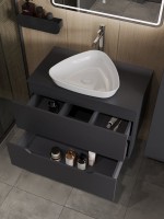- Комплектация: Тумба под раковину со столешницей Orange Line 80, подвесная, 2 ящика, матовый графит; Накладная раковина Orange B07 B07-500W, белый глянец; Зеркало Orange Nature ON-80ZE, с LED подсветкой