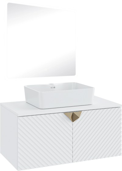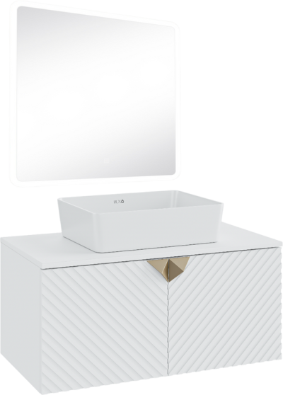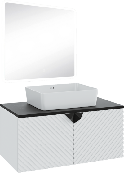 - Комплектация: Тумба под раковину Runo Андорра 85, белая матовая, черная; Накладная раковина Runo Lavello 50; Зеркало Runo Руан, 80х80 с подсветкой