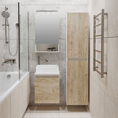 - Комплектация: Тумба под раковину Runo Бари 40, железный камень; Накладная раковина Runo Duo 40; Зеркало-шкаф Runo Микра 40, белое