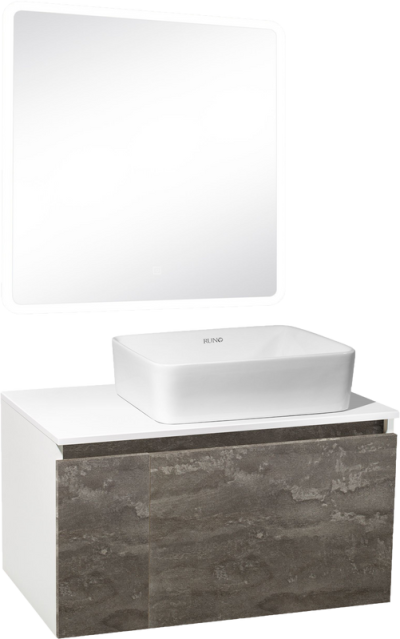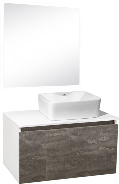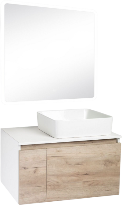 - Комплектация: Тумба под раковину Runo Бари 80, крафтовый дуб; Накладная раковина Runo Lavello 50; Зеркало Runo Руан, 80х80 с подсветкой