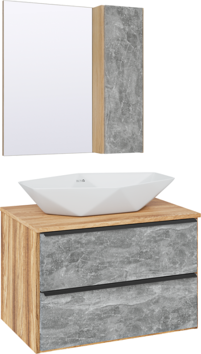 - Комплектация: Тумба под раковину Runo Мальта, 70, подвесная, дуб, черная; Накладная раковина Runo Poligono 65; Зеркало Runo Мальта, 70, дуб, черный