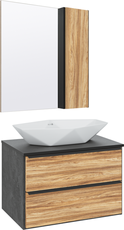 - Комплектация: Тумба под раковину Runo Мальта, 70, подвесная, дуб, серая; Накладная раковина Runo Poligono 65; Зеркало Runo Мальта, 70, дуб, серый
