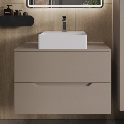 - Комплектация: Тумба под раковину Runo Мальта, 85, подвесная, дуб, серая; Накладная раковина Runo Nuovo 50; Зеркало Runo Руан, 80х80 с подсветкой