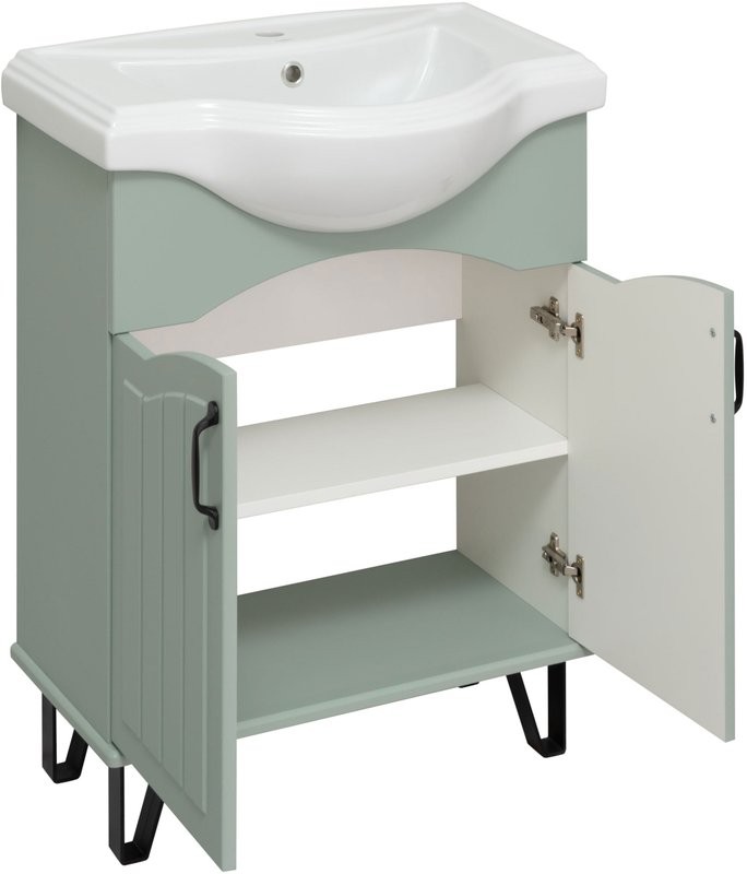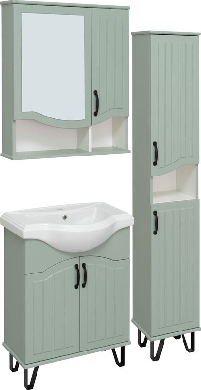 - Комплектация: Тумба под раковину Runo Марсель 65, мята; Мебельная раковина Kirovit Классик, 65; Зеркало-шкаф Runo Марсель, 65 мята