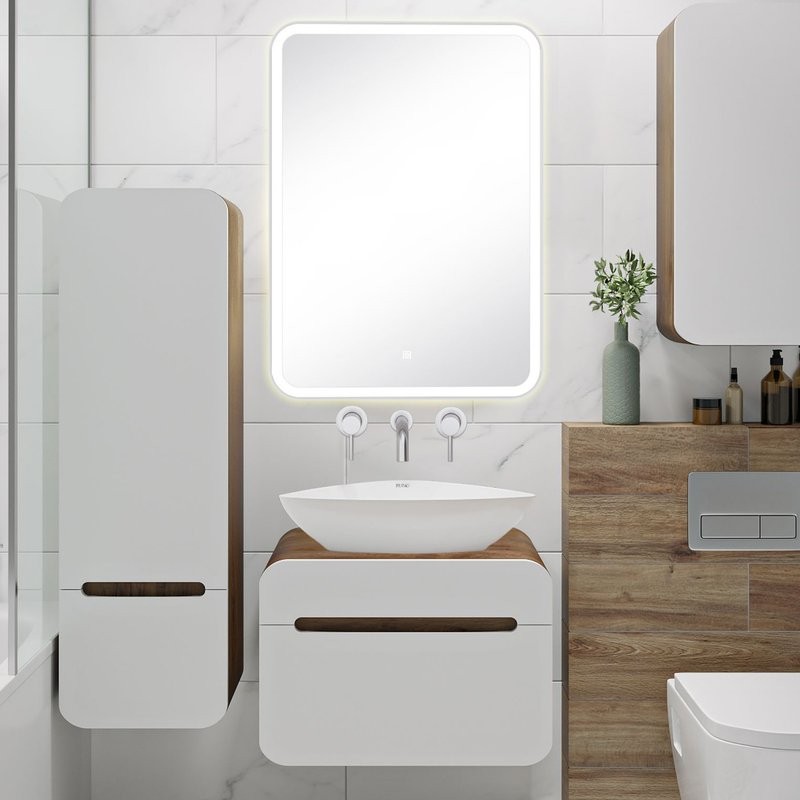 - Комплектация: Тумба под раковину Runo Ницца 60, темное дерево, белая; Накладная раковина Runo Terzo 60; Зеркало Runo Руан, 60х80 с подсветкой