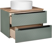 - Комплектация: Тумба под раковину Runo Орлеан 70, зеленая, дуб натуральный; Накладная раковина Runo Palla 40; Зеркало круглое Runo Руан, 65 с подсветкой