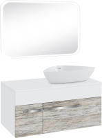 - Комплектация: Тумба под раковину Runo Вудлайн, 100, подвесная, скандинавский дуб; Накладная раковина Runo Terzo 60; Зеркало Runo Руан, 100х80 с подсветкой