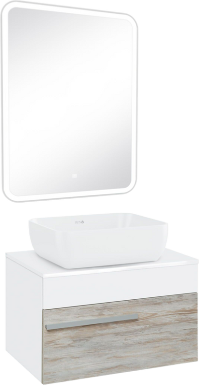 - Комплектация: Тумба под раковину Runo Вудлайн, 65, подвесная, скандинавский дуб; Накладная раковина Runo Ovale 50; Зеркало Runo Руан, 60х80 с подсветкой