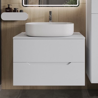 - Комплектация: Тумба под раковину Runo Вудлайн 85, железный камень; Накладная раковина Runo Bella 40; Зеркало Runo Руан, 80х80 с подсветкой