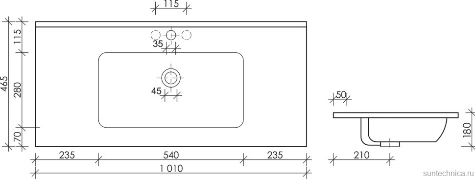 - Ширина основания с раковиной: 101