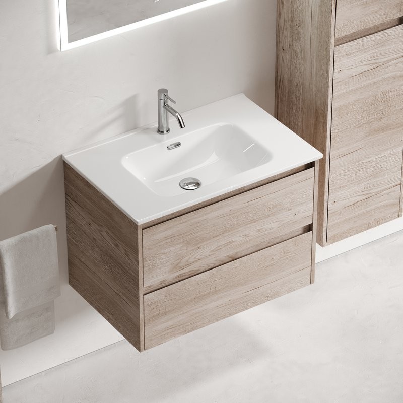 - Комплектация: Тумба под раковину Sancos Libra 70, дуб галифакс натуральный; Мебельная раковина Ceramicanova Element; Зеркало Sancos City, 70, с подсветкой