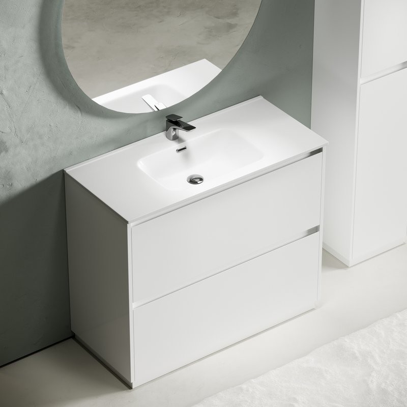 - Комплектация: Тумба под раковину Sancos Libra Floor 100, белый глянец; Мебельная раковина Ceramicanova Element CN7003 100; Зеркало круглое Sancos Sfera, 100