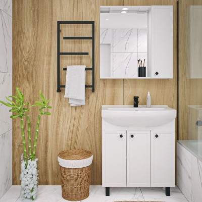 - Комплектация: Тумба под раковину Sanflor Ванесса, 75, подвесная, белая; Мебельная раковина Kirovit Оскар, 75; Зеркало Sanflor Ванесса, 75, белое