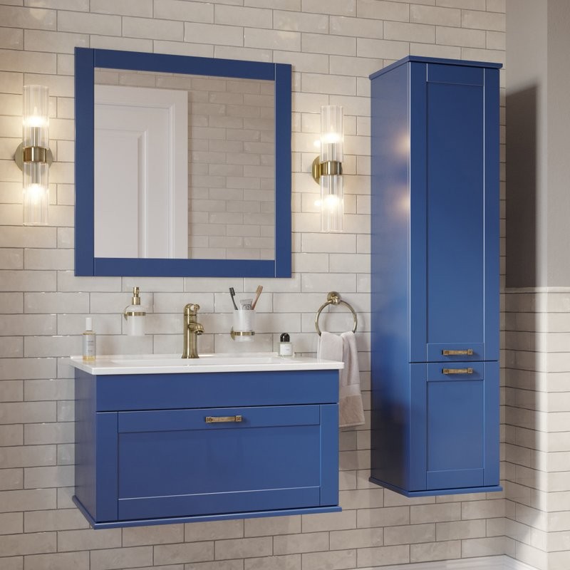 - Комплектация: Тумба под раковину Sanflor Ванесса, 75, подвесная, индиго; Мебельная раковина Kirovit Оскар, 75; Зеркало Sanflor Ванесса, 75, индиго