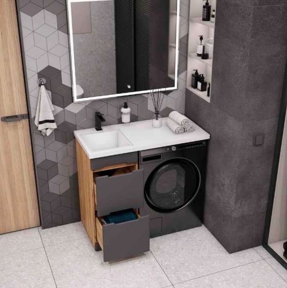 Описание для товара Мебель для ванной комнаты SanStar Darko 100 L под стиральную машину дуб вотан, графит софт, раковина Даллас скоро обновится