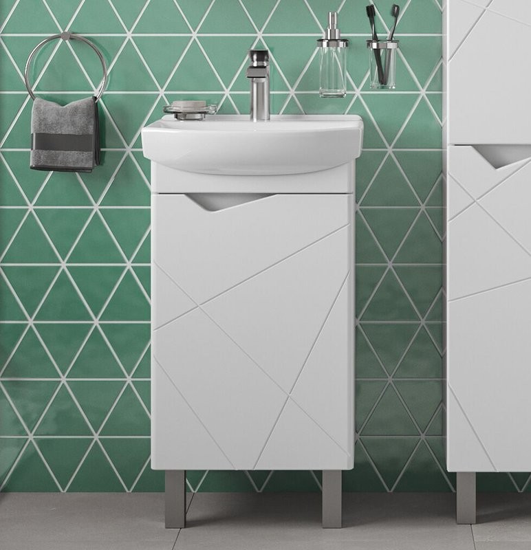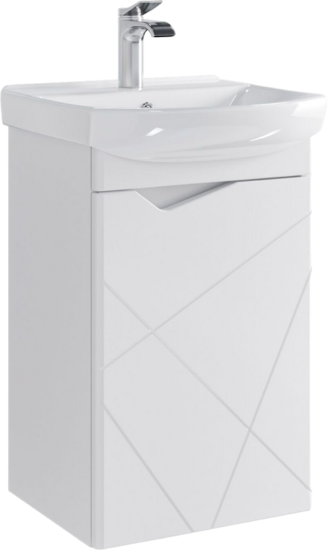 - Комплектация: Тумба под раковину SanStar Линни 45, напольно-подвесная, белая; Мебельная раковина Керамин Клермонт 45; Зеркало-шкаф SanStar Линни 50, белое