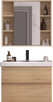 - Комплектация: Тумба под раковину SanStar Тоскана 80, подвесная, дуб сонома светлый; Мебельная раковина Sanita luxe Fest, 80; Зеркало-шкаф SanStar Тоскана 80, дуб сонома светлый