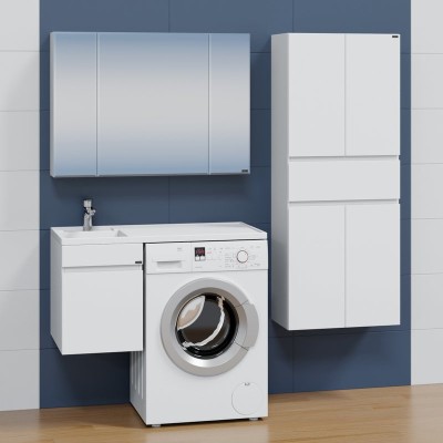 - Комплектация: Тумба под раковину СаНта Марс 38, 1 ящик, подвесная, для стиральной машины; Раковина над стиральной машиной СаНта Лидер 100, R; Зеркало-шкаф СаНта Стандарт 100 фацет