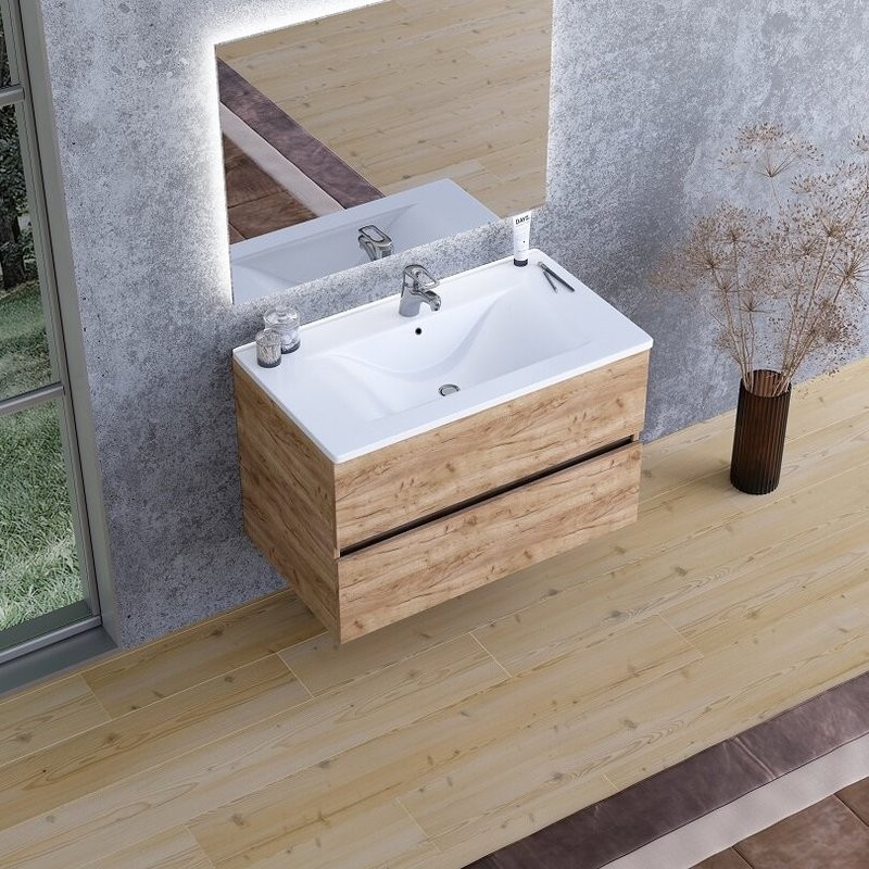 - Комплектация: Тумба под раковину Sanvit Кубэ-2 80, подвесная, дуб; Мебельная раковина Sanvit 9080 D; Зеркало Sanvit Кубэ, 80