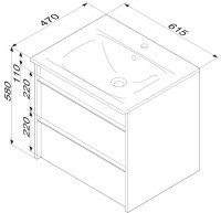 - Комплектация: Тумба под раковину STWORKI Гриндстед 60, дуб таксония; Мебельная раковина STWORKI Гриндстед 43061-112-KL, антрацит; Сифон для раковины Wirquin Минор 30718050, с выпуском 1 1/4 х 40 мм; Зеркало STWORKI Брамминг, 60х80, черное