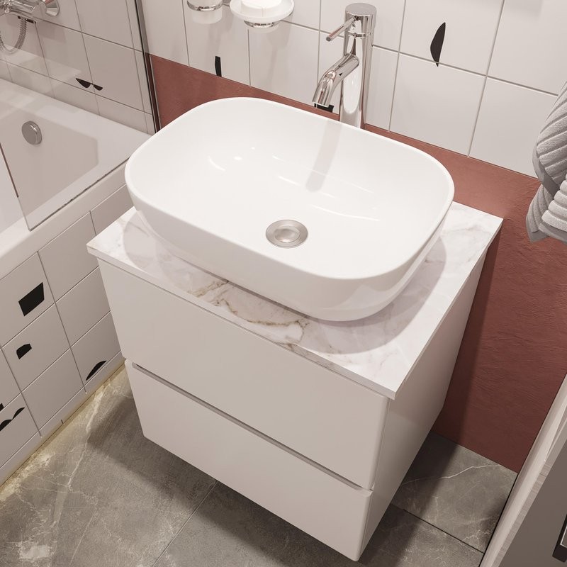- Комплектация: Тумба под раковину STWORKI Колдинг, 60, белая; Столешница в ванную под раковину Cersanit Stone Life, 60 белая сатиновая; Накладная раковина Cersanit Moduo 50 Square; Сифон для раковины Wirquin Минор 30718050, с выпуском 1 1/4 х 40 мм; Зеркало DIWO 50 с по