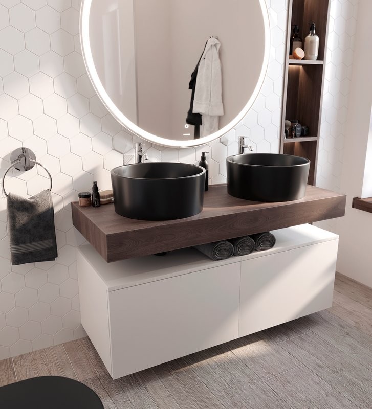 - Комплектация: Столешница в ванную под раковину STWORKI Ольборг 120, без отверстий, дуб карпентер; Накладная раковина BOCCHI Vessel 1174-004-0125, черная матовая; Зеркало круглое STWORKI Мальмё, 100 с подсветкой, сенсор на зеркале, круглое, настенное, российское; Тумба