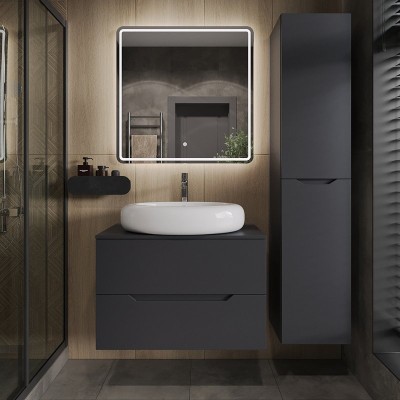 - Комплектация: Тумба под раковину Style Line Бергамо Мини 80, Люкс Plus подвесная, антискрейтч черная; Мебельная раковина Style Line Каре Люкс Мини, 80х35; Зеркало DIWO 80 с подсветкой светодиодной, сенсорный выключатель, российское, настенное