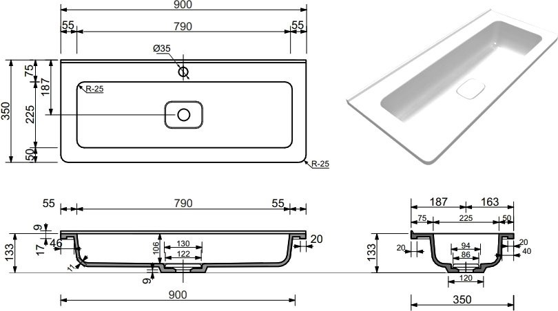 - Может комплектоваться следующими раковинами: Style Line Каре Люкс Мини 90х35