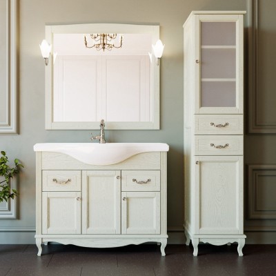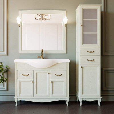 - Комплектация: Тумба под раковину ValenHouse Эллина 105, кальяри, 6 ящиков, 1 дверца, ручки хром; Мебельная раковина Kirovit Классик 105; Зеркало ValenHouse Эллина, 105 кальяри, основа светильника хром