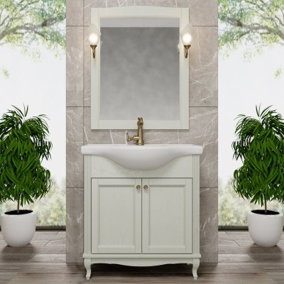 - Комплектация: Тумба под раковину ValenHouse Эллина 80, слоновая кость, 2 дверцы, ручки хром; Мебельная раковина ValenHouse Erica 80; Зеркало ValenHouse Эллина, 80 слоновая кость, основа светильника хром