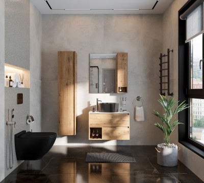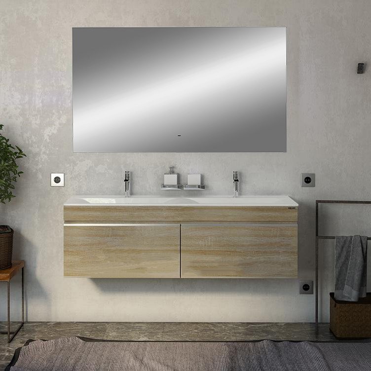 - Комплектация: Тумба под раковину Velvex Pulsus 140, подвесная, дуб сонома; Мебельная раковина Madera Pulsus, 140; Зеркало DIWO 120 с подсветкой, прямоугольное, в стиле лофт, инфракрасное управление