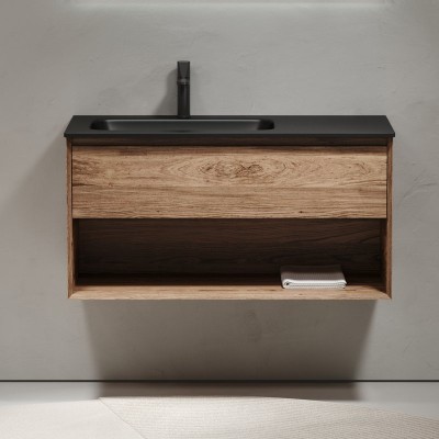 - Комплектация: Тумба под раковину Vincea Chiara 2D, 100, подвесная, 2 ящика, дуб табак; Мебельная раковина Vincea VCB-13100B, 100 см, черная; Зеркало Vincea VLM-3MA100, 100х80 с подсветкой
