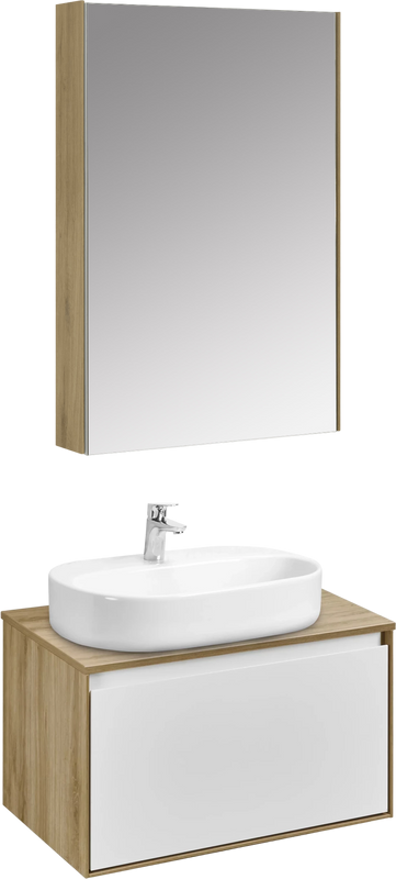 • Комплектация: Тумба под раковину Vod-Ok Квадро 80, белая; Мебельная раковина Dreja Q 80; Зеркало-шкаф Vod-Ok Квадро 80 с подсветкой