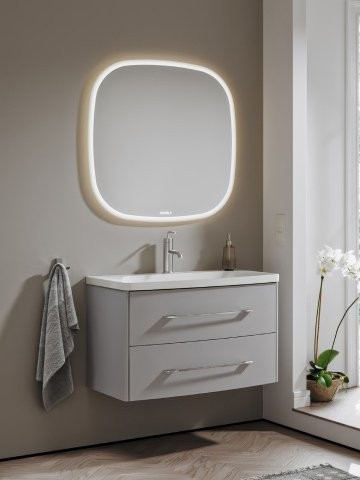 - Комплектация: Тумба под раковину без столешницы Тумба под раковину без столешницы Aqwella 5 stars Neringa 80 подвесная, пепельная роза; Мебельная раковина Мебельная раковина Aqwella Neringa 80 накладная, белая, прямоугольная, искусственная мрамор; Зеркало Зеркало Aqwel