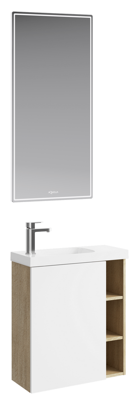 - Комплектация: Тумба под раковину без столешницы Тумба под раковину без столешницы Aqwella Alba 60 R, подвесная, дуб давос; Мебельная раковина Мебельная раковина Aqwella Compact Slim 60 накладная, белая, прямоугольная, искусственный мрамор; Зеркало Зеркало Aqwella UM 50