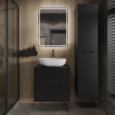 - Комплектация: Тумба под раковину со столешницей Тумба под раковину со столешницей Art&Max Genova 80 подвесная, 2 ящика, бетон бромо; Накладная раковина Накладная раковина Art&Max AM-78109 50 белая, прямоугольная, фаянс; Зеркало Зеркало Art&Max Genova White 80х80 белое,