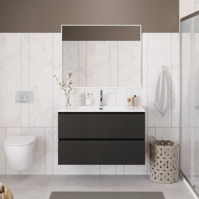 - Комплектация: Тумба под раковину без столешницы Тумба под раковину без столешницы BelBagno Uno 100 подвесная, 2 ящика, матовая еловая; Мебельная раковина Мебельная раковина BelBagno BB-8099-100 накладная, глянцевая белая, прямоугольная, фаянс; Зеркало Зеркало BelBagno
