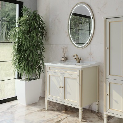 - Комплектация: Тумба под раковину без столешницы Тумба под раковину без столешницы Caprigo Лион 105 3 дверцы, 2 ящика, орех античный; Мебельная раковина Мебельная раковина Kirovit Классик 105 накладная, белая, прямоугольная, фаянс; Зеркало Зеркало Caprigo Лион 100 орех