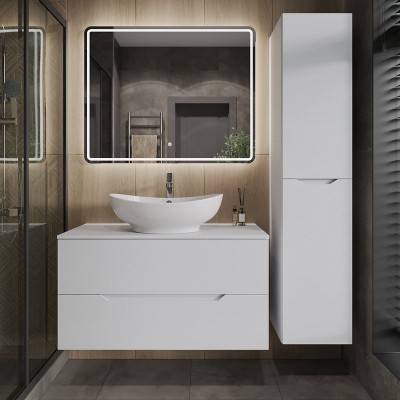 • Комплектация: Тумба под раковину без столешницы Тумба под раковину без столешницы Corozo Алабама 80, подвесная; Мебельная раковина Мебельная раковина Madera Adel 80 накладная, глянцевая белая, прямоугольная, искусственный мрамор; Зеркало Зеркало STWORKI Монтре 80 с под