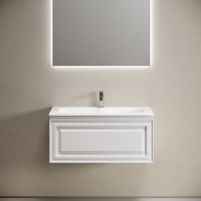 - Комплектация: Тумба под раковину без столешницы Тумба под раковину Sancos подвесная Very 90 Beige Soft VR90CE; Мебельная раковина Мебельная раковина Ceramicanova Element CN7002 91 накладная, белая, прямоугольная, фарфор; Зеркало Зеркало Sancos Square 90