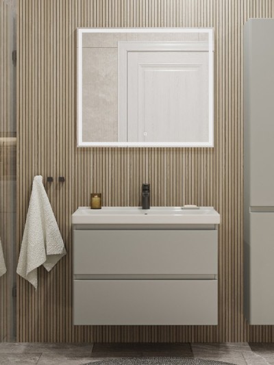 - Комплектация: Тумба под раковину без столешницы Тумба под раковину без столешницы SanStar Riana 80 подвесная, cappuccino; Мебельная раковина Мебельная раковина Cersanit Como 80 накладная, белая, прямоугольная, фарфор; Зеркало Зеркало SanStar Varna 80 с подсветкой