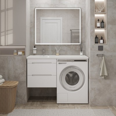 Описание для товара Мебель для ванной комнаты SanStar Толедо 120 R подвесная, под стиральную машину, глянцевая белая, раковина Даллас 120 скоро обновится